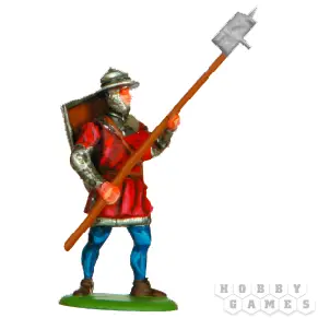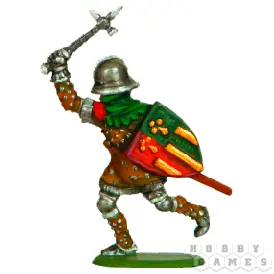 Пехотинцы носили практичные бригантные доспехи из металлических пластин, нашитых на тканевую основу, и защищали голову либо бацинетами, либо шапелями. Также они были снабжены различными щитами.