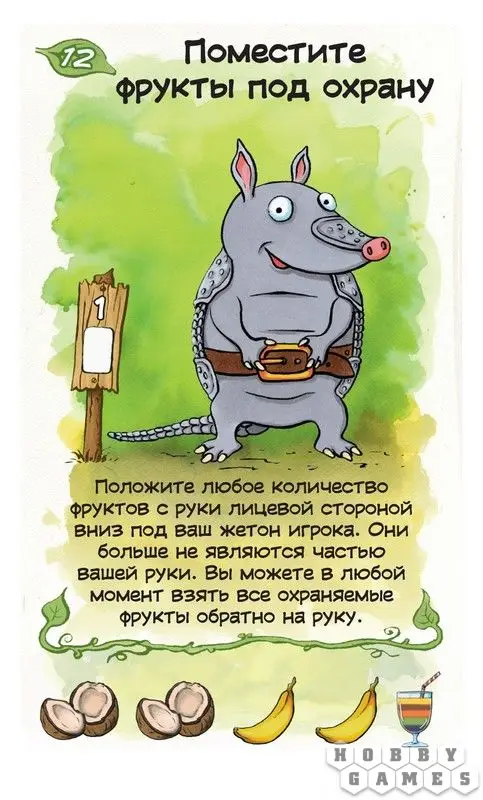 Игра "Фруктогонщики" особенная – набор действий, доступных игрокам, меняется со временем. С каждой партией вы будете открывать всё новые и новые действия, а исходные действия со временем станут недоступными, поэтому каждая последующая игра будет отличаться от предыдущей. Но все эти изменения обратимы: дойдя до конца колоды карт животных или завершив серию игр в любой другой момент, вы можете восстановить игру в исходном состоянии!