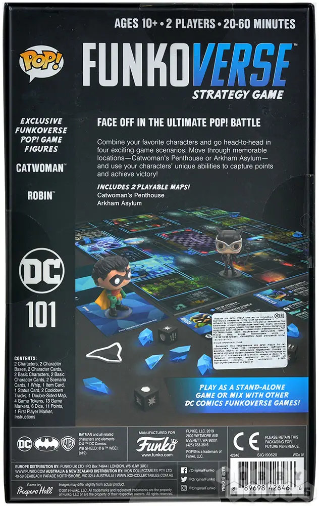 Funkoverse – это настольная игра, в которой сходятся персонажи из самых разных вселенных, объединённые неповторимым оформлением от Funko! В данном наборе вы найдёте двух персонажей из любимой киновселенной DC: Робина и Женщину-кошку.