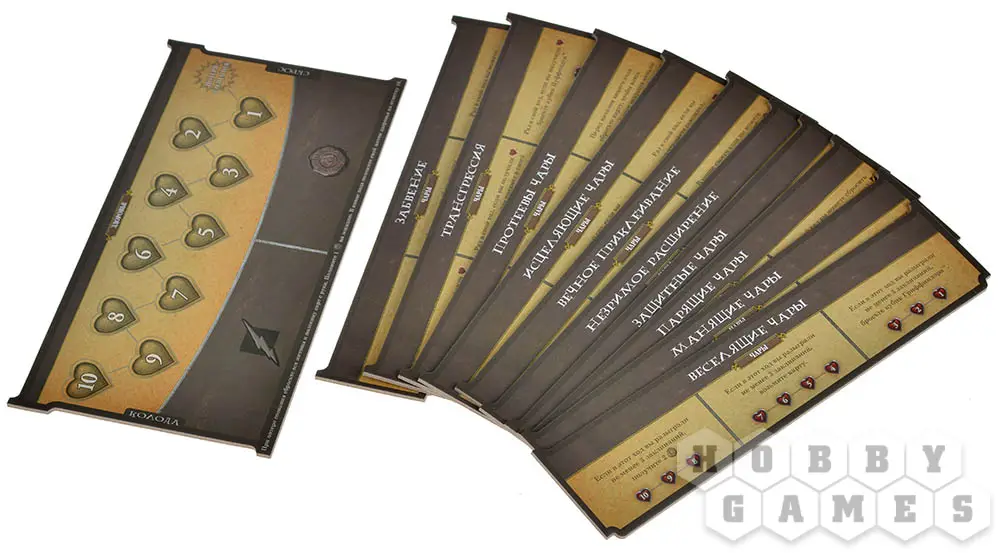 В дополнении "Чары и зелья" вас ждут новые испытания и приключения. Фанаты поттерианы знают, что чем старше становится курс, тем больше знаний открывается ученикам Хогвартса. И это справедливо не только для книг и фильмов, но и для игры: "Чары и зелья" можно ввести в игру начиная с шестой коробки базовой игры. Чары дают вам новые способности, которые напрямую связаны со здоровьем волшебника, и чем оно ниже, тем сильнее будет эффект! А использовать их можно выполнив определённое условие: либо сбросить карту, либо разыграв их определённую комбинацию.