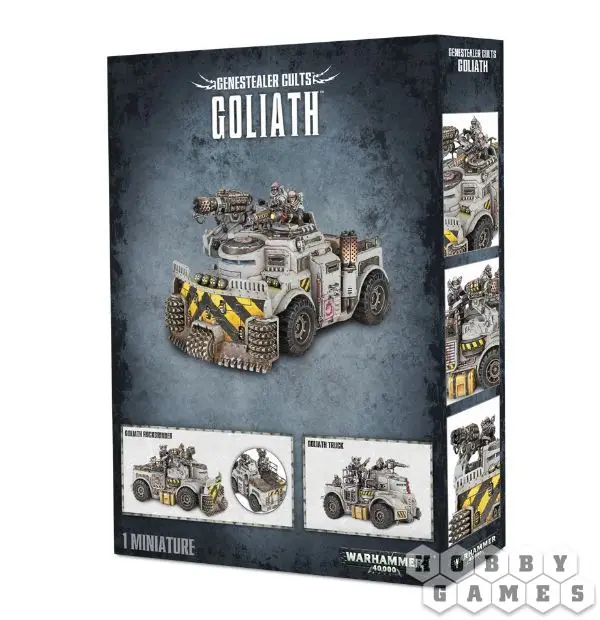 Быстрый, маневренный и крепкий, "Голиаф" - верная боевая машина Культа Генокрадов. Он носится по полю боя, установки тяжелых стабберов и автопушек изрыгают поток пуль за потоком. Культисты стараются подъехать к врагам как можно ближе, чтобы откинуть аппарель грузовика - изнутри же на противников кинется ощетинившийся когтями и зубами отряд Гибридов.