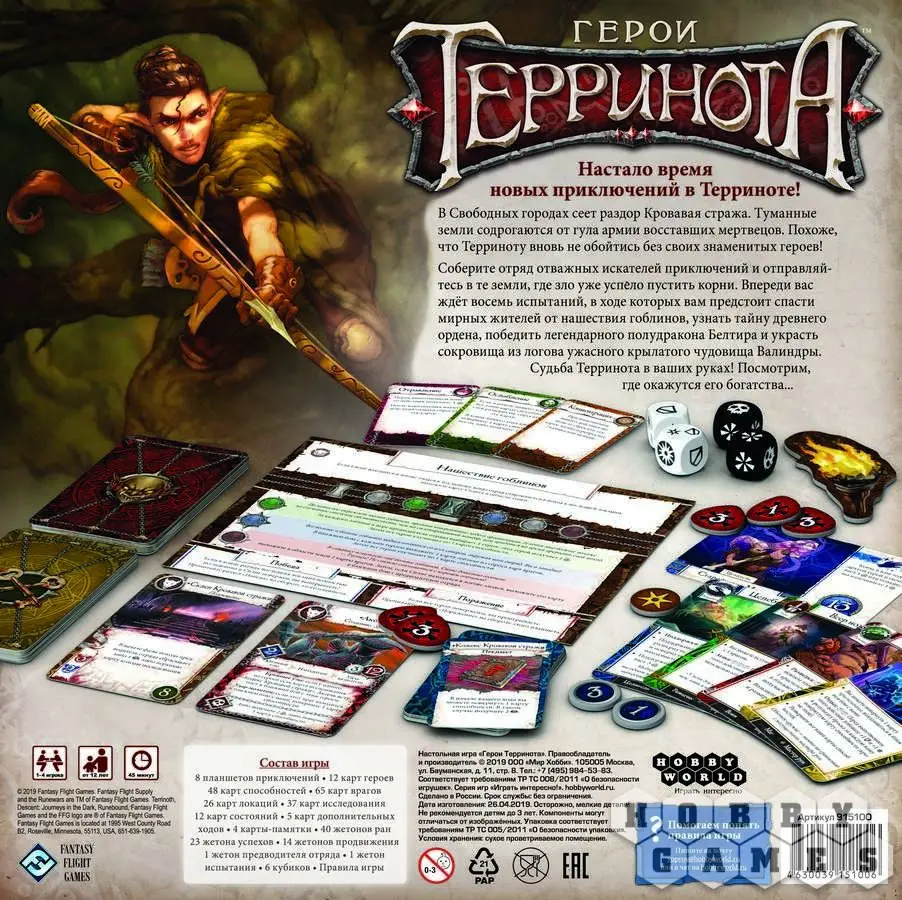 "Герои Терринота" – это кооперативная приключенческая игра для четырёх человек, действие которой происходит в знакомом многим настольщикам фэнтезийном мире Терринот. Вам и вашим спутникам предстоит собрать эффективный геройский отряд, не знающий слабых сторон, и отправиться в трудное и опасное путешествие. Чтобы отряд был максимально боеспособным, у игроков есть обширный выбор в классах, архетипах и различных способностях героев, которые можно получить, преодолевая новые трудности и развивая героя.