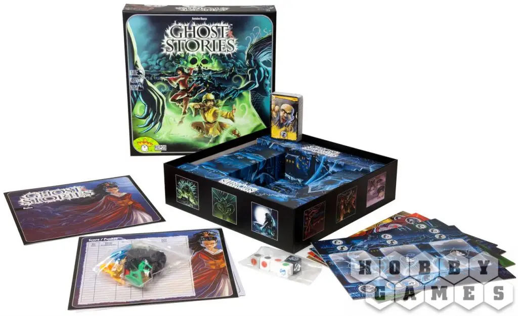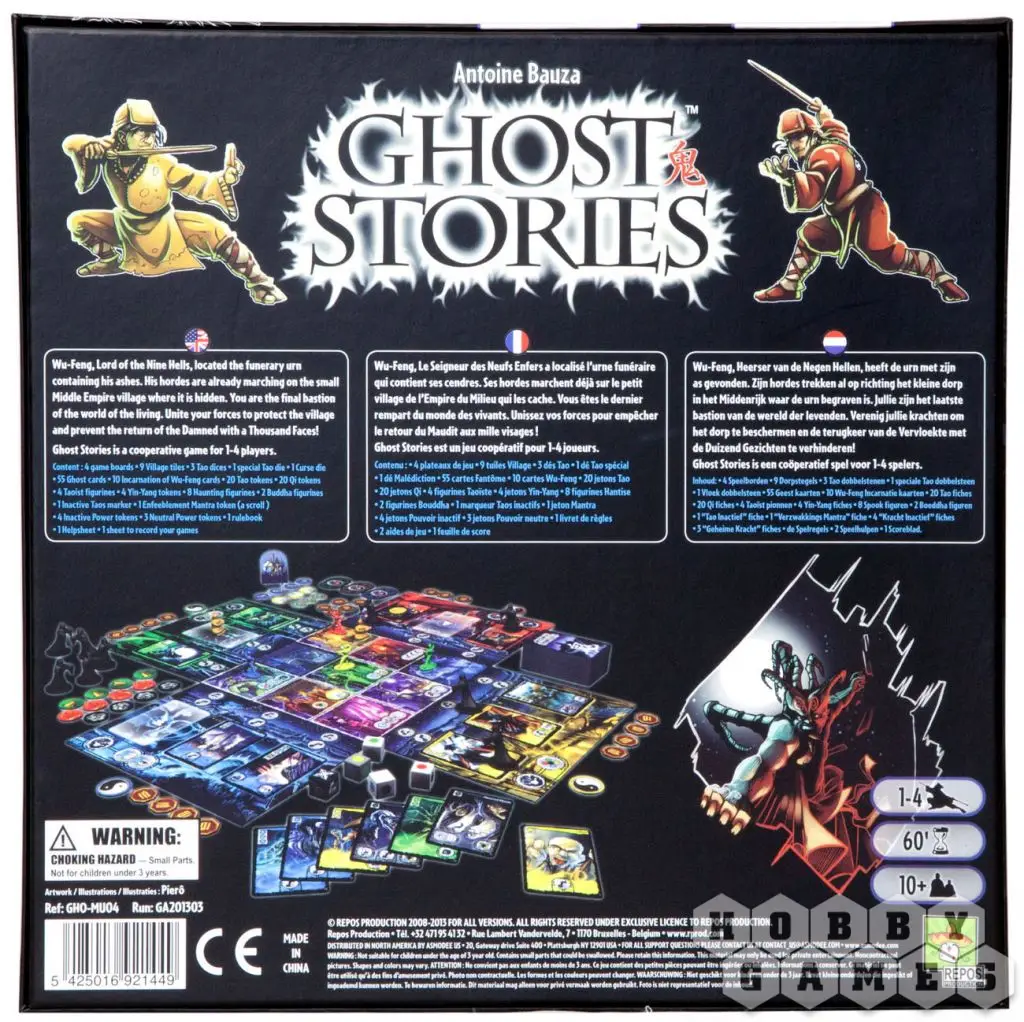 «Ghost Stories» это кооперативная настольная игра, в которой игроки вместе пытаются защитить деревню от воплощения Повелителя Ада - Wu-Feng - и его легиона духов, прежде чем те заполонят деревню и восстановят прах, который позволит Повелителю вернуться к жизни. Каждый игрок представляет собой даосского монаха, работающих сообща, чтобы бороться с волнами призраков.