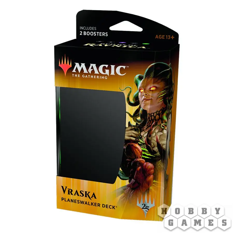 Этот набор содержит колоду planeswalker-а Враски, горгоны, обладающей большим количеством убийственных заклятий, которые полностью отражают её сущность. После убийств она оставляет себе сувениры – окаменевшие части поверженных противников. Живя в Равнике, она оказывает услуги для гильдий, но берётся только за ту работу, что ей по душе.