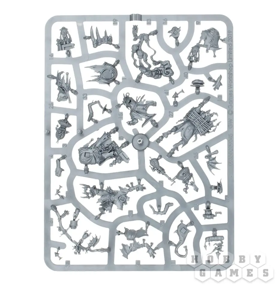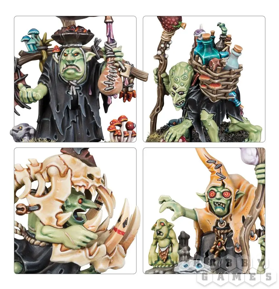В набор входит всё необходимое для сборки целой Гоббашоблы – шабаша гротов, дающих вашей армии возможность применять всевозможные хитрые уловки. В армию они берутся как целый отряд, однако действуют как отдельные персонажи и обладают необыкновенными и грозными способностями. В наборе Вы найдёте пятерых героев:
