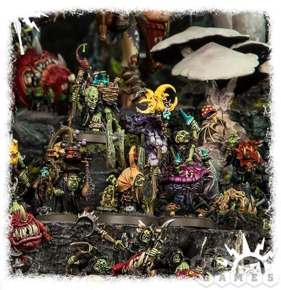 Как уже было сказано, Вы берёте всех пятерых гротов вместе, но на поле боя они действуют по отдельности. Также они могут образовать воспетый батальон Гоббашобла, что укрепит из чары и даст всем уникальные способности. Вам будет необычайно приятно красить все входящие в набор модели благодаря их уникальным особенностям и ярким цветам. Также Вы получите всевозможные украшения для ваших подставок, в том числе всевозможные грибочки и даже оживший камень!