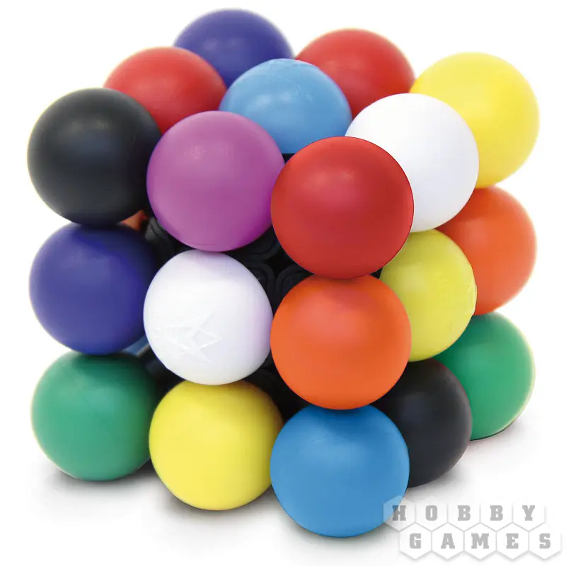 Головоломка Молекуб – это потрясающая головоломка от Меффертс! И в первую очередь, она выделяется своим дизайном: 26-ть шариков-атомов 9-ти цветов, образующих кубик-молекулу. И именно по этой причине производитель назвал головоломку “Молекуб”. Причем в основе механизма лежит идея кубика 3х3, но с небольшим и важным нюансом. Так вот, суть в этом кубике изменена, а форма, механизм и даже впечатления от сборки здесь полностью уникальны!