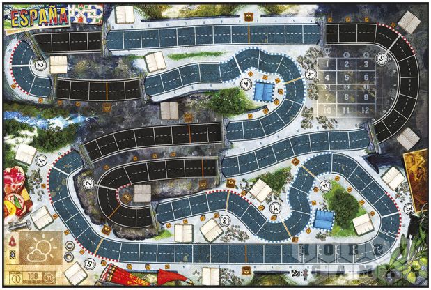 Выберите свой цвет и возьмите все компоненты этого цвета: болид, планшет игрока, переключатель скоростей, 12 карт скорости и 3 карты начальных улучшений. Дополнительно возьмите карты стресса и нагрева (их количество указано на карте трассы). Перемешайте полученные карты (кроме нагрева) и выложите составленную колоду в левую ячейку своего планшета, а карты нагрева в среднюю – это ячейка двигателя. Расположите болиды на игровом поле и возьмите из своей колоды 7 карт. Всё готово к гонке!