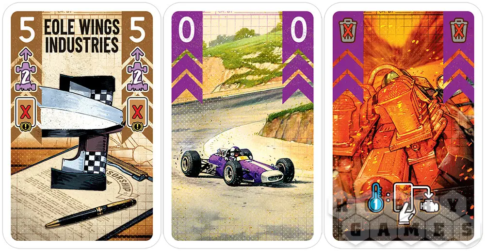Этап 7.Проверка поворота: если в какой-то момент своего хода вы пересекли линию поворота, вы проверяете свою текущую скорость с ограничением поворота. Если скорость меньше, то всё в порядке. А если превышает, сбросьте столько карт нагрева с планшета, сколько составляет разница между вашей скоростью и ограничением. Но если карт нагрева не хватит – вы вылетите с трассы!