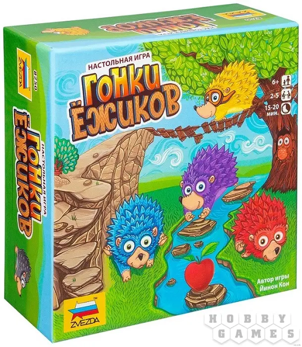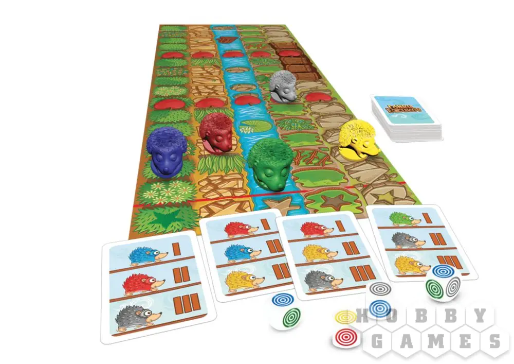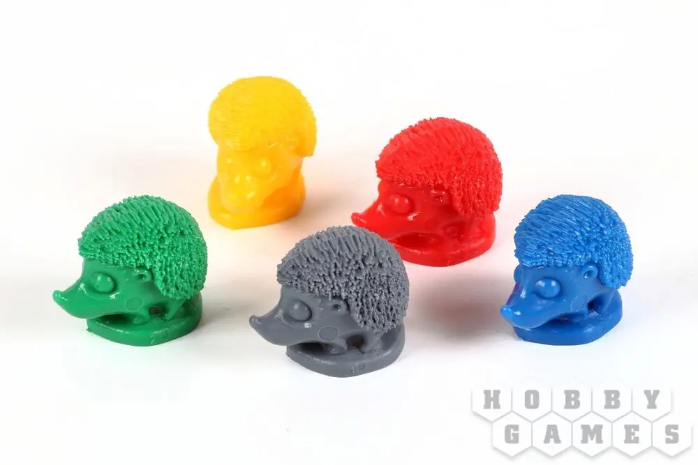 В начале гонки каждый из игроков в тайную выбирает себе карту, на которой обозначены вероятные победители соревнования. Кто займет первое, второе и третье место? Немного тактики и внимательности помогут вам привести заветную тройку ежей к победе. Ходя по очереди, игроки бросают кубики и определяют, кто из ежей вырвется вперёд. Игра заканчивается, когда первый ёжик добежит до финиша.