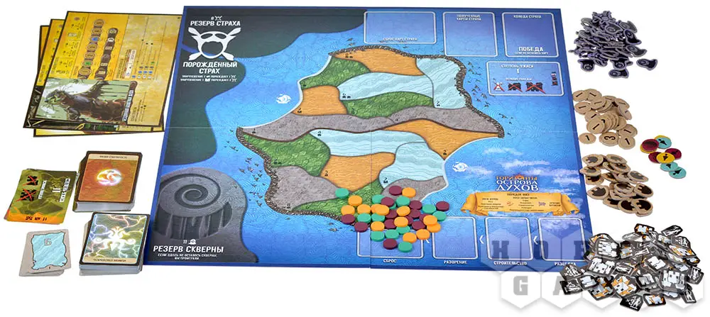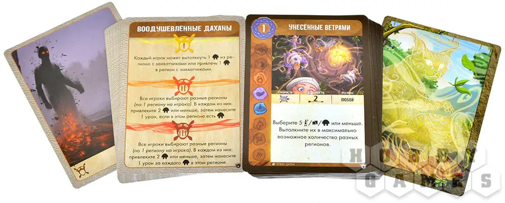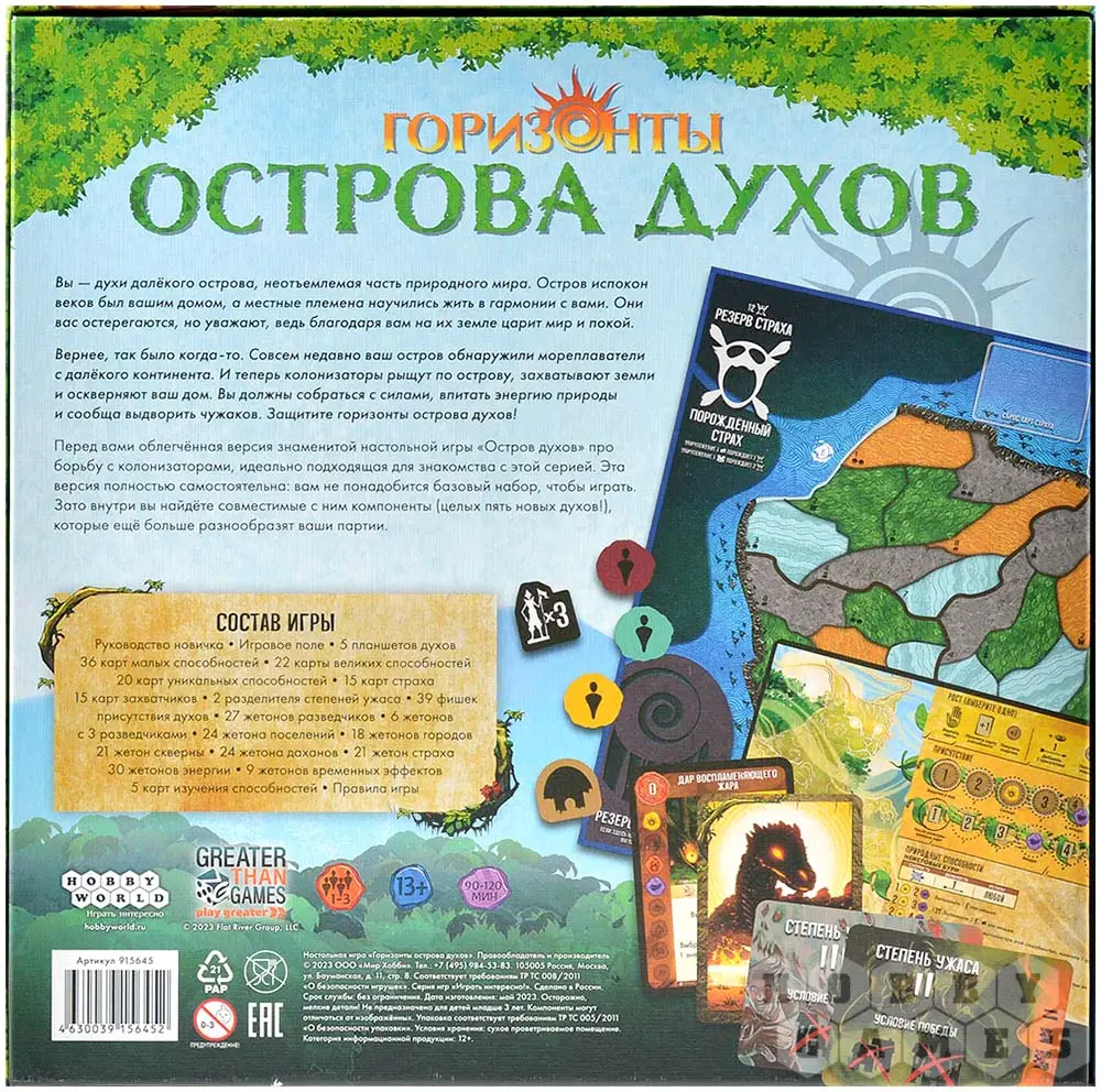 "Горизонты острова духов" – облегчённая версия известной кооперативной игры "Остров духов". Это полностью самостоятельная игра, в которой вы возьмёте роли духов, сражающихся против дерзких захватчиков.