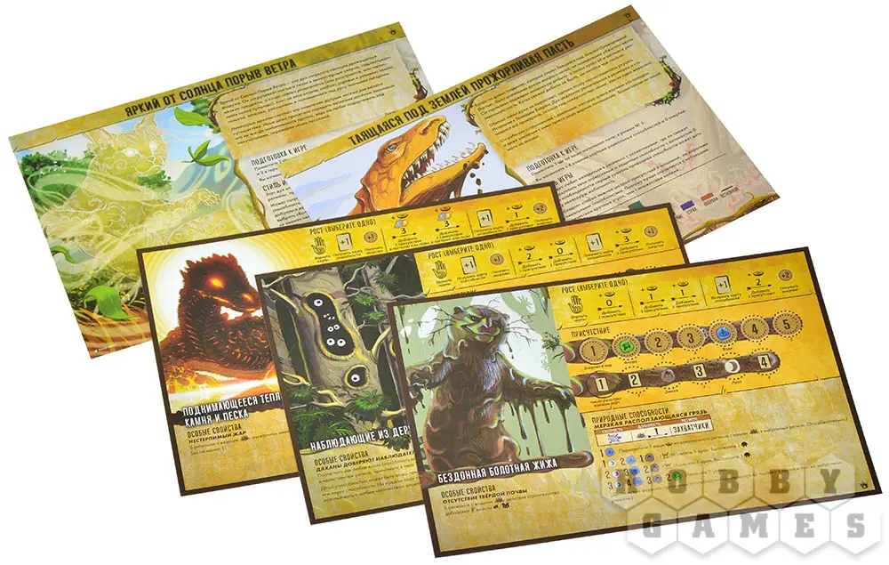 Для начала каждый игрок выбирает себе подходящего духа. Каждый дух отличается уровнем сложности и уникальными способностями. Игроки формируют карту острова, поделённую на секторы. На них и будет проходить партия.