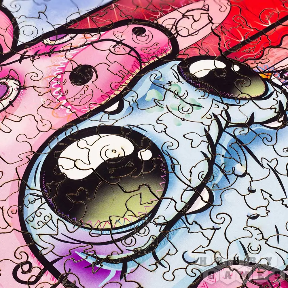 Яркие картинки созданы на основе собственных авторских иллюстраций. Деревянные детали пазлов выполнены в форме различных монстриков и изготовлены из экологичных материалов белорусского производства.
