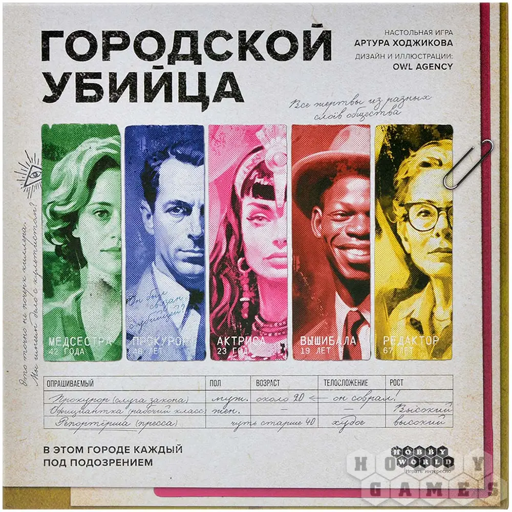 "Городской убийца" – это захватывающий детектив, в котором один из игроков предстанет в личине хитроумного убийцы, в то время как другой станет воплощением опытного следователя, идущего по следу преступника. Каждая роль предлагает игрокам уникальный опыт: убийце необходимо тщательно продумывать каждое действие, и желательно на несколько шагов вперёд, а следователю – искать доказательства, разговаривать с горожанами, среди которых могут быть лжецы, и проводить параллели между показаниями, стараясь собрать кусочки пазла в единую картину.