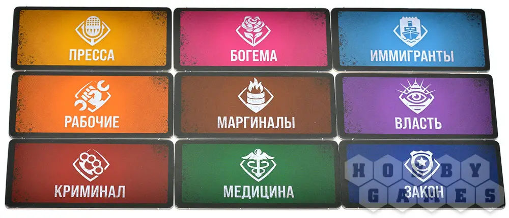 - Пожарная часть позволяет взять случайный жетон социальной группы из стопки. Используя этот жетон, детектив может один раз переместить каждого жителя выбранной социальной группы