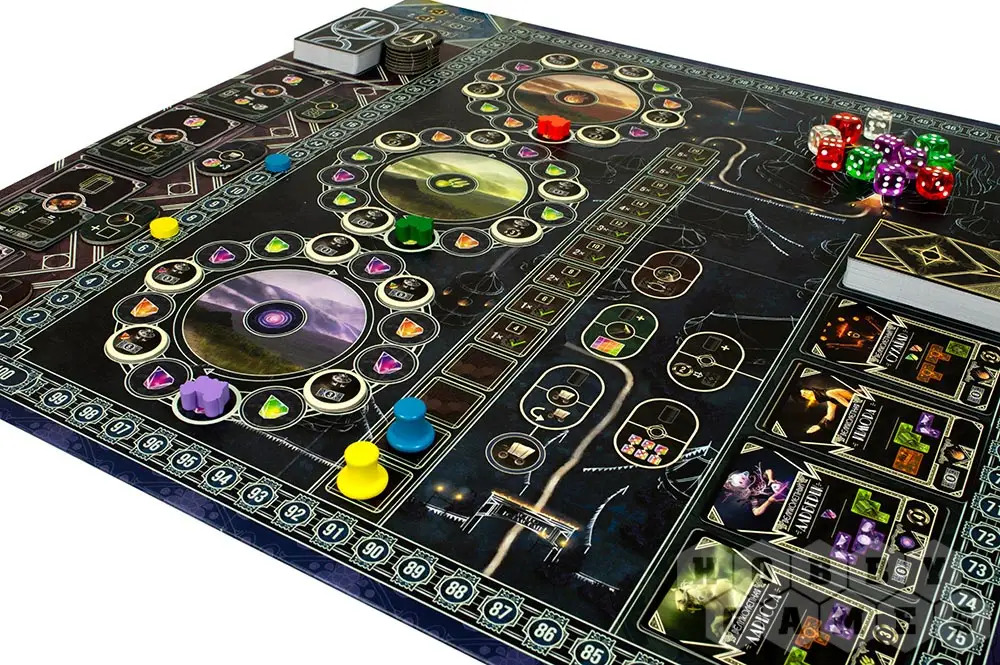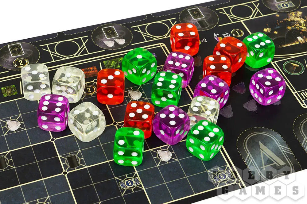 Каждый ход игрок берёт один цветной кубик из общего запаса. Значение выбранного кубика – ваши очки действия. Добавьте к его значению все кубики того же цвета, которые вы уже собрали, и получите совокупные очки действия. С помощью самоцветов можно добавить дополнительные очки действия, если они вам необходимы на этот ход. Эти очки действия можно использовать для выполнения одного из трёх основных действий игры: строительство, путешествие, представление.