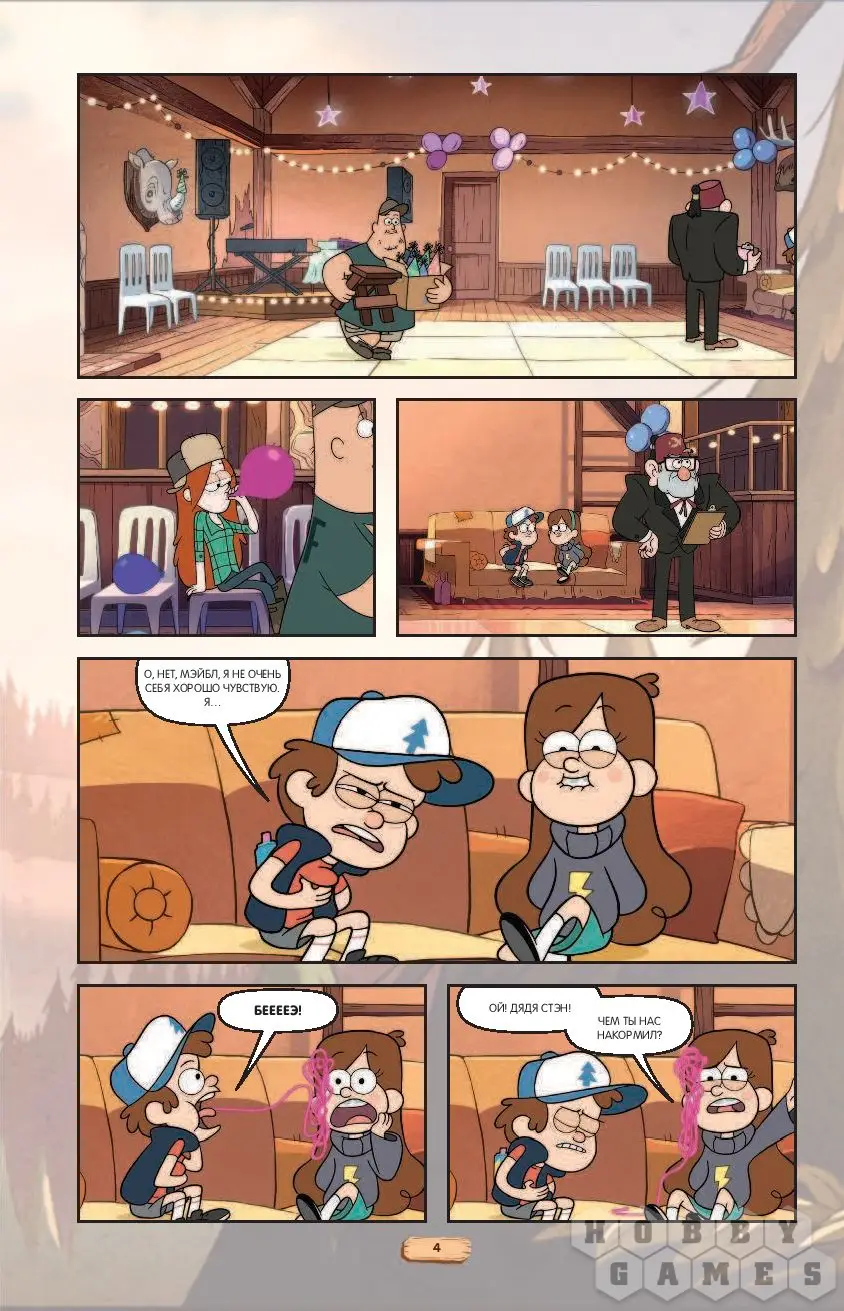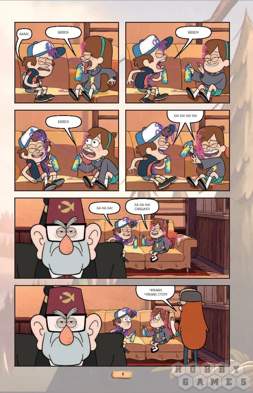 Графический роман «Гравити Фолз» — настоящая находка для любого из десятков тысяч фанатов мегапопулярного анимационного сериала. Сюжеты 7, 8 и 9 серий первого сезона в формате комикса порадуют тех, кто давно и серьезно «подсел» на истории о приключениях Диппера и Мэйбл, и тех, кто только знакомится с ними.