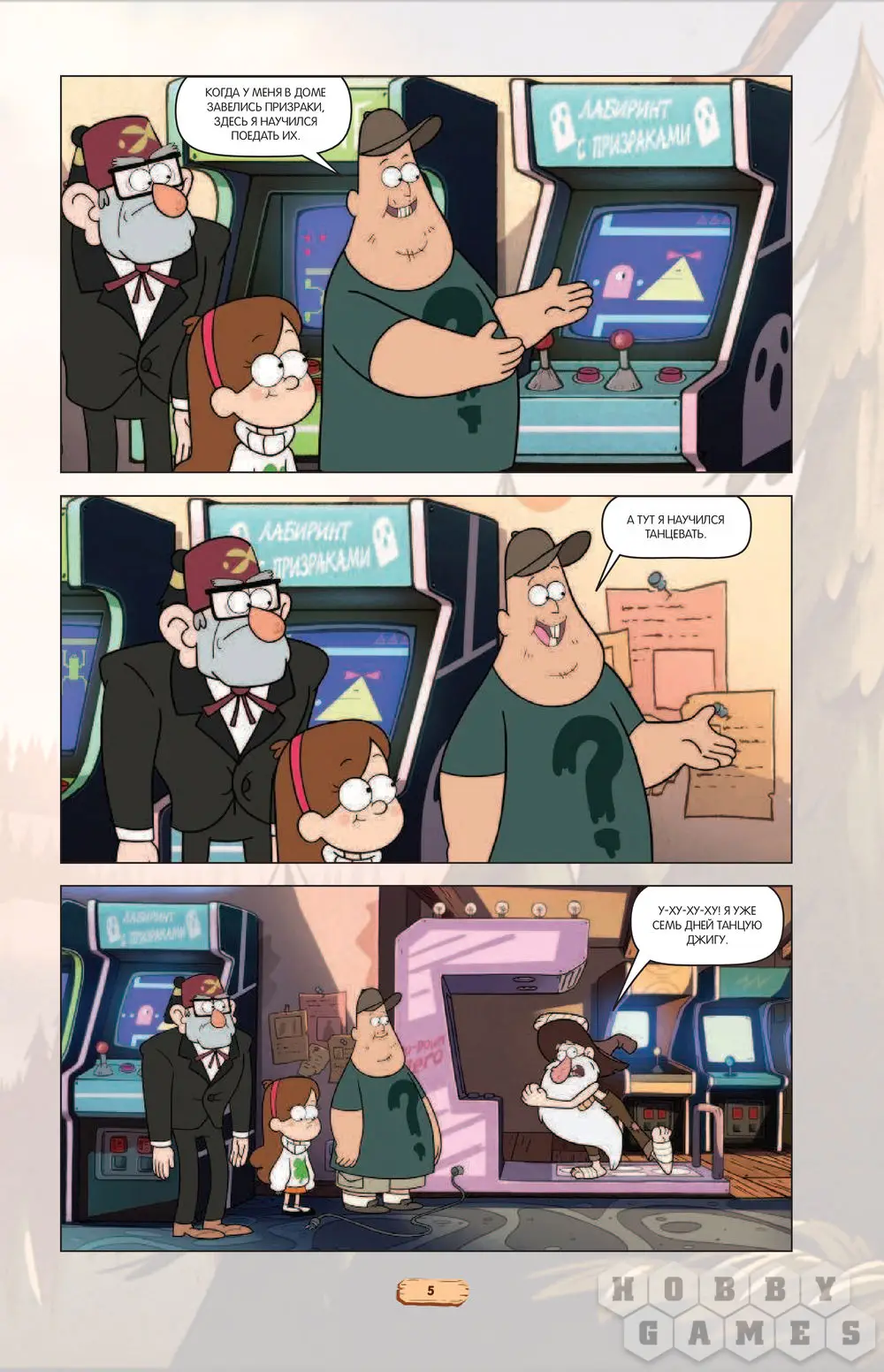 Очередной выпуск графического романа "Гравити Фолз" и еще одна любимая книга на полке каждого фаната сериала! Рамбл Макскермиш против Робби, малыш Гидеон против дяди Стэна и наконец, двойняшки Пайнс против Летоуинского ловкача - это будет настоящее захватывающее приключение!