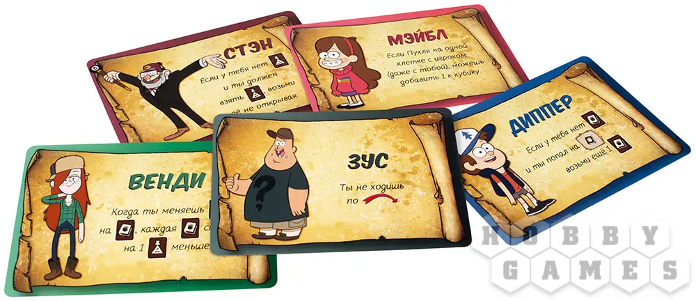 Разложив вокруг игрового поля карты дороги, помощи и пакостей, карту и фишку Пухли, а также карту Хижины Чудес, участники выбирают себе героев и готовы отправиться на поиски беглеца.