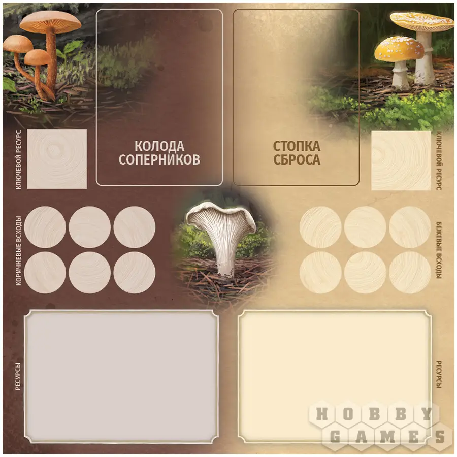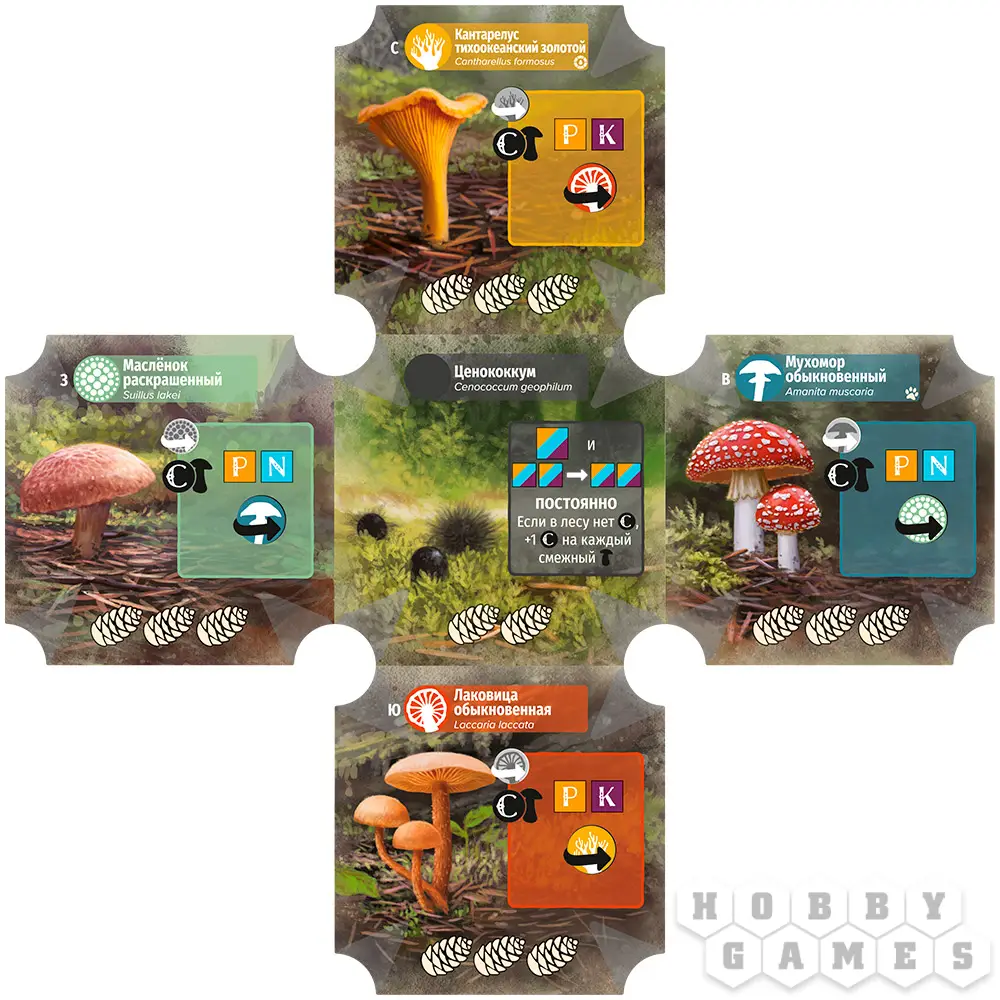 В мире природы царства Грибов и Растений связаны тесной дружбой, называемой симбиозом. Каждый участник этого процесса поддерживает другого, создавая живую гармонию. В этом удивительном союзе грибы помогают деревьям расти и крепнуть, а деревья в ответ заботятся о своих грибных партнёрах. Именно так поддерживается баланс и развивается лес. И именно этот процесс природной взаимовыручки воплощён в данной настольной игре.