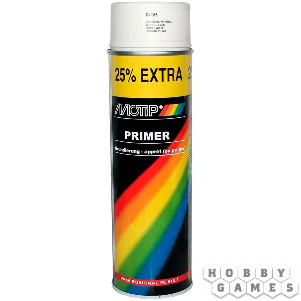 Motip Primer – это быстросохнущий акриловый грунтовочный слой краски для деревянных, металлических, алюминиевых, стеклянных и каменных поверхностей. Его допускается покрывать любыми типами красок. Перед тем, как покрывать поверхность грунтовкой, её надо отшлифовать (например, наждачной бумагой), почистить, высушить и обезжирить. Потом нужно встряхивать баллончик на протяжении нескольких минут, а распылять грунтовку лучше с расстояния в тридцать сантиметров. Наносить несколькими тонкими слоями. Температура обработки: пятнадцать-двадцать пять градусов по Цельсию. Шлифовать и наносить лакокрасочное покрытие через два часа. После использования перевернуть баллончик вверх дном и распылить в течение нескольких секунд.