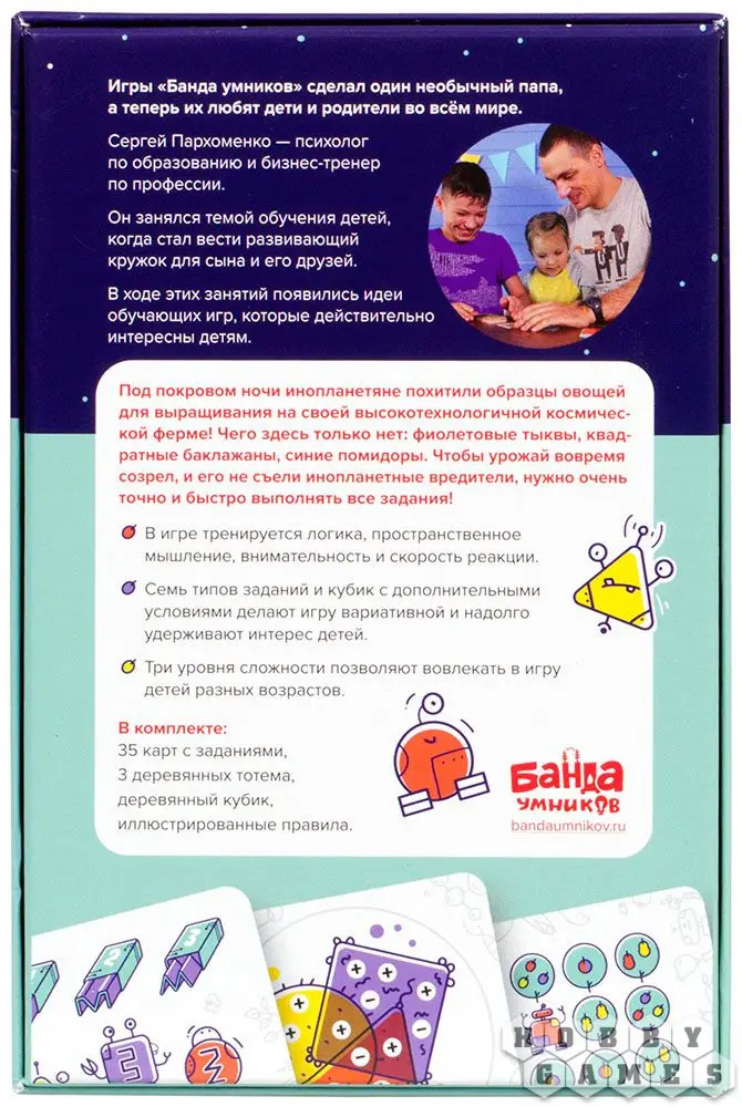 Семь типов задач и кубик с дополнительными условиями добавляют игре вариативности и надолго удерживают детский интерес. В игре есть три уровня сложности, за счет чего она будет занимательной и увлекательной для детей разного возраста.