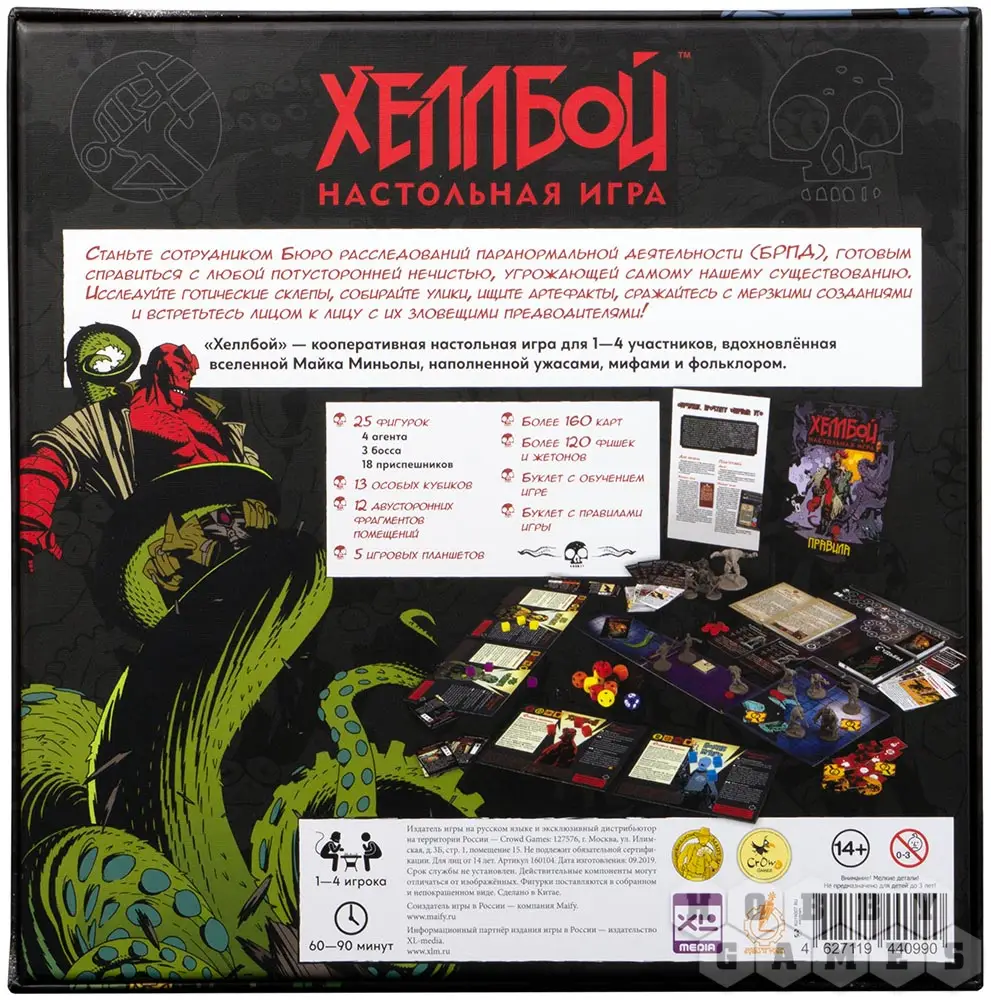 Настольная игра "Хеллбой" – это кооперативное настольное приключение, в котором вам и вашим союзникам предстоит остановить древнее зло. Возьмите под своё управление легендарных членов БРПД (Бюро расследования паранормальной деятельности), сошедших со страниц культового комикса Майка Миньолы.