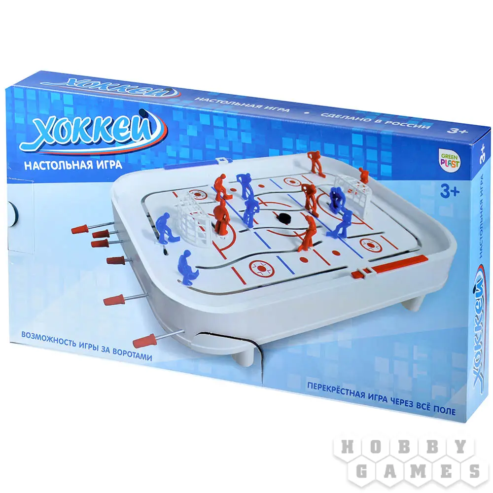 Хоккей – классическая настольная игра, которая увлечёт не только игроков, но и жадных до зрелища болельщиков. Соревнуйтесь на скорость реакции и меткость! Организуйте настоящий хоккейный матч в кругу семьи или друзей, и выясните, кто станет чемпионом! Особенность игры заключается в возможности играть как через всё поле, так и за воротами. Ловким движением рук обыграйте противника и возьмите ворота!