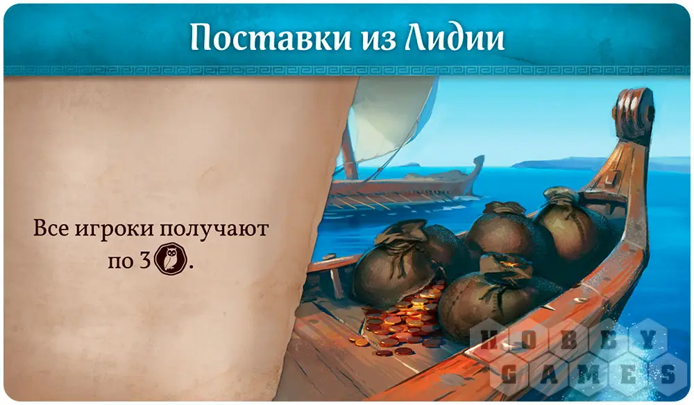 Если несколько игроков выбрали одно и то же действие, они могут разыграть его одновременно. Далее начинается этап "Прогресс", на котором все игроки по очереди могут повысить уровень на одном из треков: экономика, культура или военная мощь. Для этого необходимо заплатить драхмы в количестве, указанном в ячейке следующего уровня. Когда этап будет пройден, переходите к розыгрышу события: выполните эффект карты события, которую первый игрок зачитал и выложил в открытую на этапе объявления события. Если на карте не указано, кого из игроков касается этот эффект, указания выполняют все игроки. На этапе достижений игроки могут получить, как неожиданно, достижения (только если выполнили его условие). Каждое из достижений может быть получено только один раз, но сразу несколькими игроками, если в конце раунда у них всех выполнено условие его получения. Если один игрок выполнит условие получения достижения, но в предыдущем раунде это же достижение уже было получено другим игроком, то первый его не получает. Каждое из достижений даёт определённое преимущество игроку, который его получил. Подробности о достижениях и условиях их получениях вы найдёте в правилах игры. По окончанию данного этапа переходите к первому этапу "Объявление события".