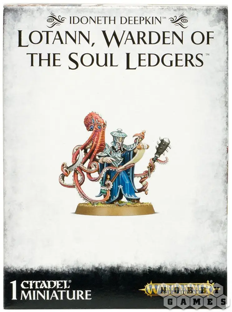 Этот многокомпонентный пластиковый набор содержит детали, необходимые для сборки Лотана, Хранителя Душ (Lotann, Warden of the Soul Ledgers). Не обращая внимания на хаос сражения и бои вокруг себя, Лотан полностью погружен в Каталог Душ, внушительный свиток пергамента в левой руке,в котором он ведет учет захваченных душ Идонета. Для записи Хранитель использует костяное перо, которое в случае нападения врага превращается в колющее оружие, что происходит довольно редко – основная обязанность защиты лежит на плечах фамильяра Охтара. Это большое, похожее на осьминога существо нависает над правым плечом Лотана, угрожающе потрясая дубинкой с зубчатым лезвием. В одной из щупалец Охтан задумчиво удерживает запасной свиток, на случай, если подсчет душ станет слишком велик.