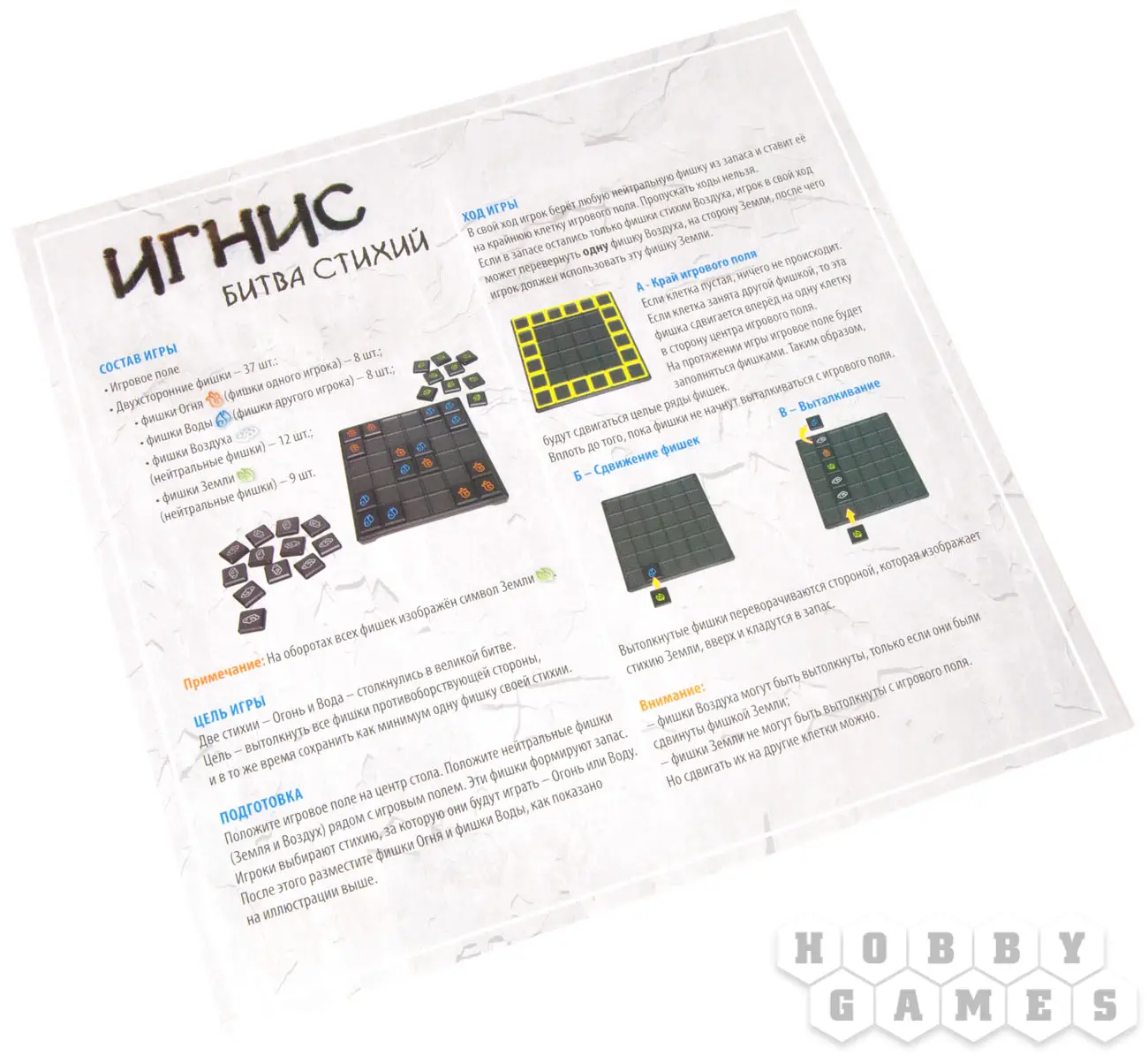 Огонь… и вода! В настольной логической игре «Игнис» эти два первичных элемента борются за господство. Ход за ходом стихии отхватывают новые участки, пытаясь вытолкнуть своего вечного оппонента! Проявите свой ум и стратегию в условиях ограниченного, и динамически уменьшающегося пространства!