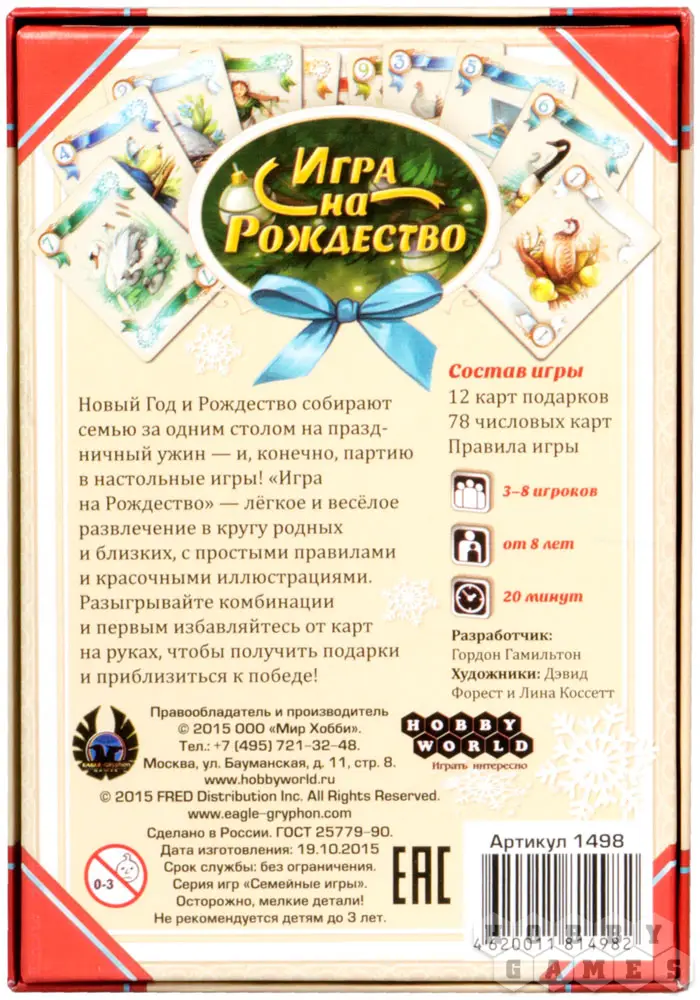 Зимние праздники - семейные праздники. Все родные и близкие собираются за одним столом, чтобы вместе отметить Новый Год и Рождество и, конечно, сыграть партию в настольные игры! «Игра на Рождество» — веселое и приятное развлечение в семьи. Красочные, праздничные иллюстрации и простые правила сделают игру интересной для всех от мала до велика. Первым избавляйтесь от карт на руках, разыгрывайте комбинации, получайте подарки и побеждайте!