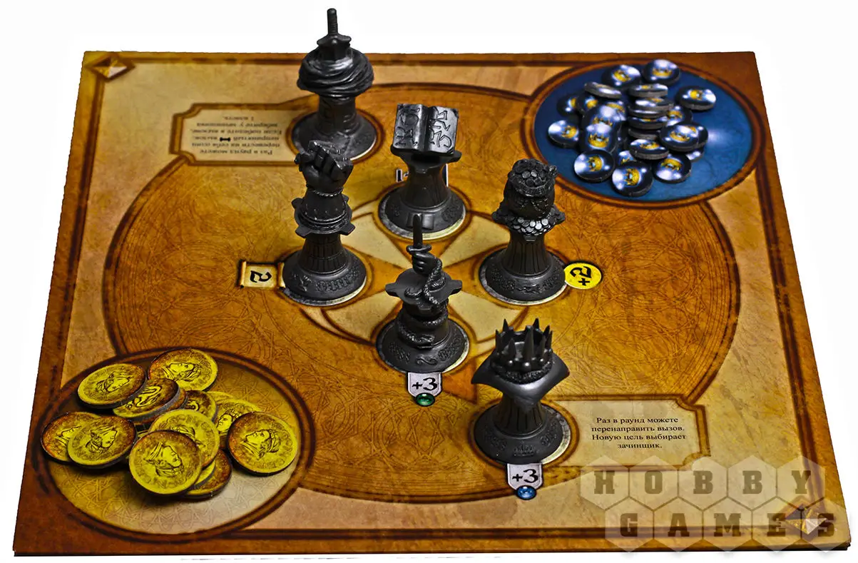 Игровое поле поделено на три зоны: Палата малого совета, Сокровищница и Тронный зал. В процессе игры из Тронного зала участники берут жетоны власти, в Палате малого совета получают фишки титула, а в Сокровищнице – Золотых драконов.