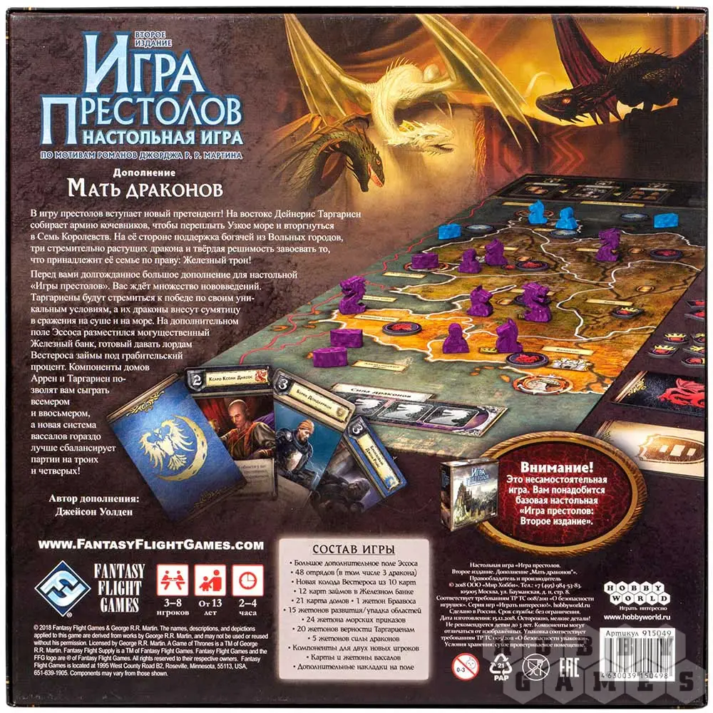 "Игра престолов. Мать драконов" – это долгожданное дополнение для второго издания культовой настольной игры "Игра престолов". Какие новинки и особенности вас ждут: