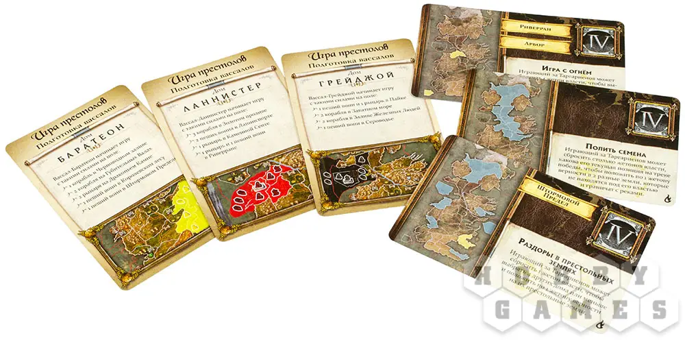 Настольная игра "Игра Престолов" создана на основе цикла романов Джорджа Мартина "Песнь льда и пламени", который переносит игроков в мир эпических событий кровопролитной саги. Каждому из участников "Игры престолов" предстоит возглавить один из Великих Домов, сражающихся за главенство над Семью королевствами Вестероса. Собирая армии, захватывая земли, создавая союзы, Великий Дом стремится подчинить себе наибольшее количество замков и крепостей, чтобы подкрепить свои претензии на власть и воссесть на Железном Троне.