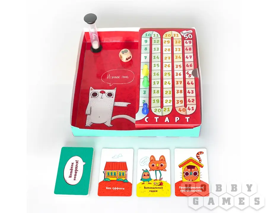 В этой весёлой и полезной настольной игре все термины располагаются на карточках с яркими и запоминающимися персонажами. Именно поэтому все части речи, падежи и склонения становятся предельно понятными и прочно закрепляются в памяти. А чтобы научиться их замечать и понимать, в игре используются карты с забавными словосочетаниями и предложениями — с ними точно не соскучишься!