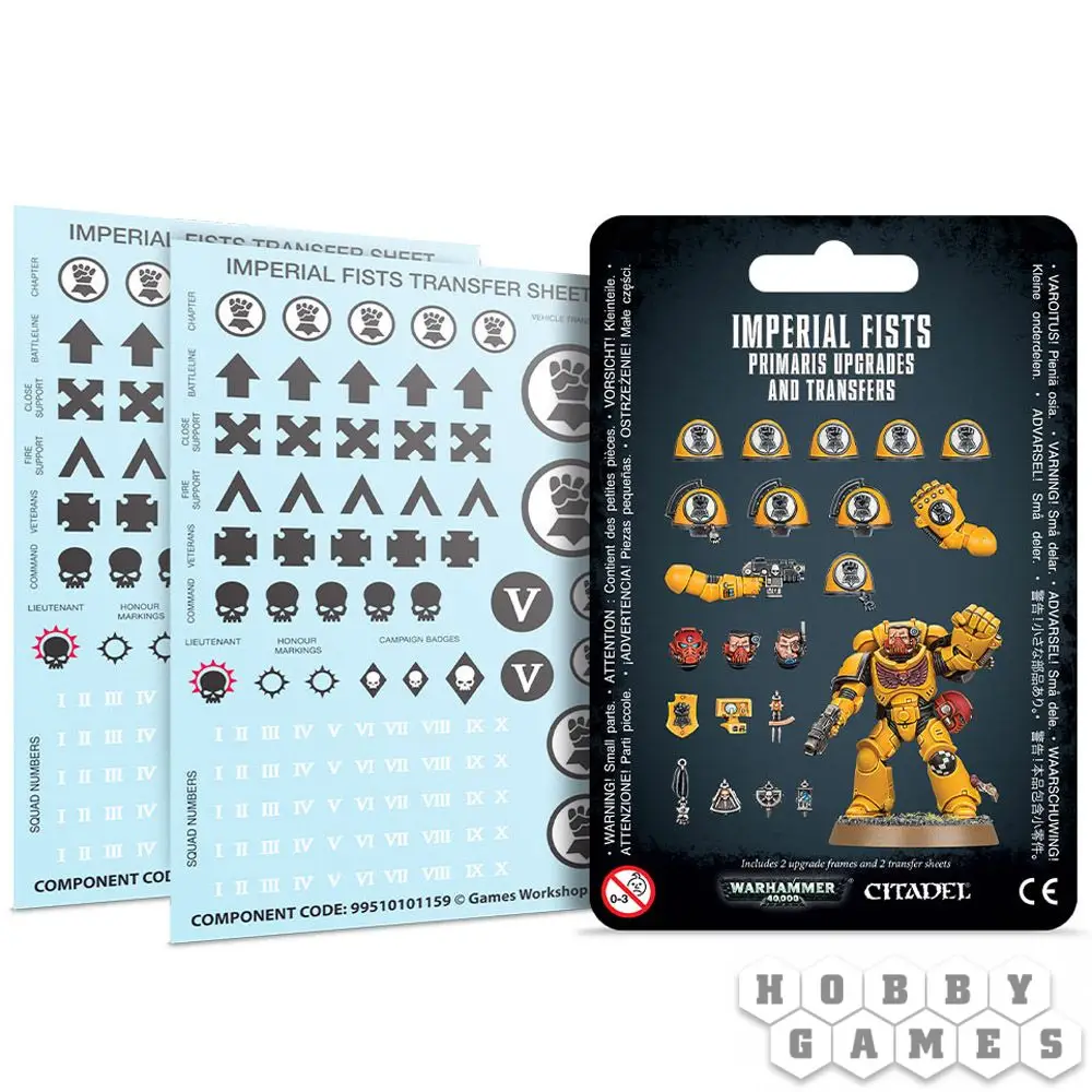 Собираете орден Имперских Кулаков (Imperial Fists) и, верите, что любую проблему можно решить с помощью фортификаций? Тогда этот набор улучшений и переводных декалей создан для ваших космических десантников! Этот набор можно использовать для улучшений различных отрядов Космического Десанта (Space Marines) с помощью аксессуаров и геральдики, свойственной ордену Имперских Кулаков.
