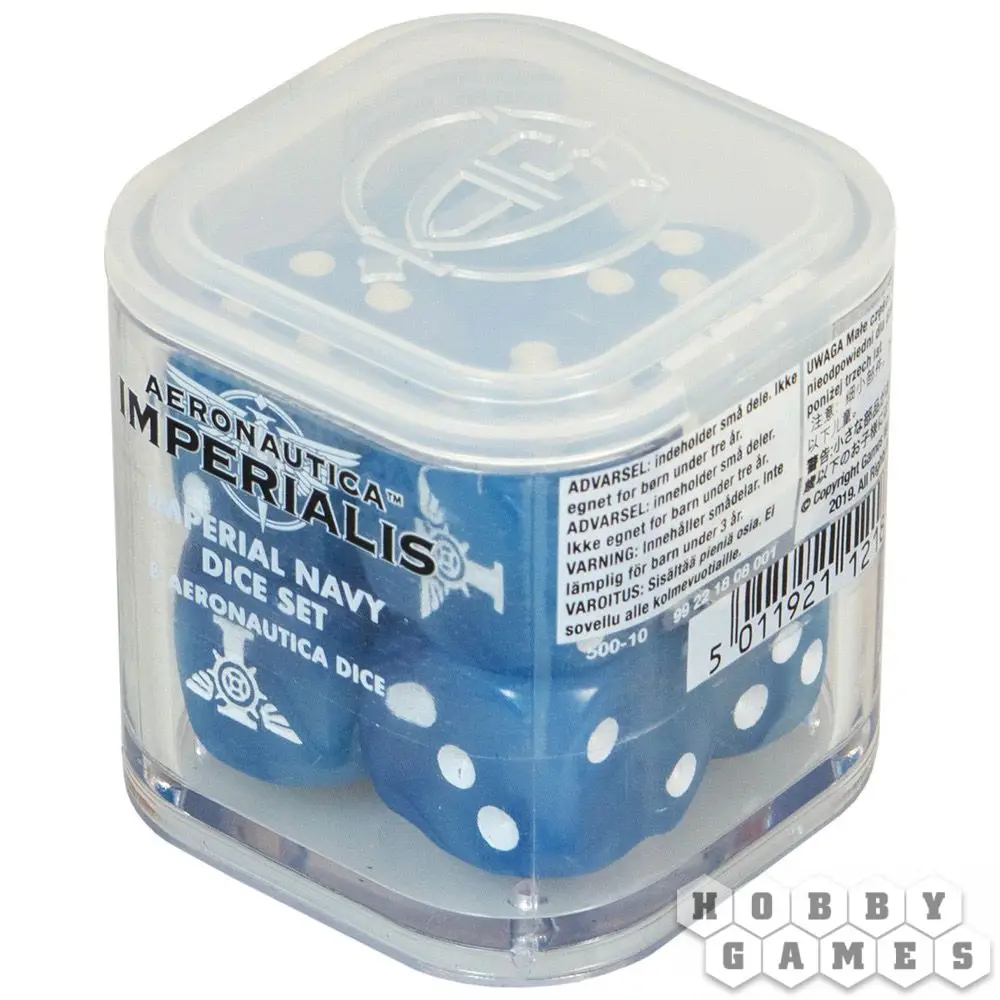 Восемь кубиков в этом наборе имеют размер 16x16 мм со скруглёнными краями, а вместо шестёрки используется символ игры Aeronautica Imperialis. Кубики выполнены в голубом цвете под мрамор с белыми точками и поставляются в прозрачной кубической упаковке.
