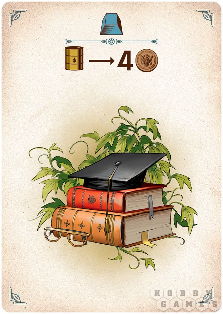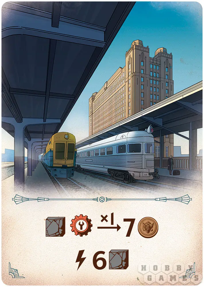 В правилах игры вы также найдёте вариации, призванные усложнить процесс для более опытных игроков. Кроме того, стоит отметить красочные иллюстрации на картах предприятий. Для многих из них основой стали изображения реальных промышленных комплексов рубежа XIX–XX веков. Они стали архитектурным гимном эпохи инженеров и предпринимателей, пара и электричества, первых автомобилей и трансконтинентальных железных дорог.