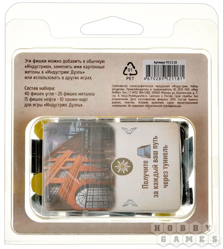 Перед вами уникальной набор ресурсов для игры "Индустрия". Внутри вы найдёте деревянные фишки для замены картонных жетонов в "Индустрии: Дуэль", использования в базовой игре (если всё, что было в коробке, вы уже истратили, а производство не стоит на месте) или для других игр. Но не одними ресурсами богаты: что приятнее всего, вас также ждут 10 эксклюзивных промокарт для "Дуэли", которые добавят глубины и новых тактических возможностей! Практично, эстетично и функционально – ваш стол заиграет новыми красками, а игровой процесс – новыми стратегическими поворотами!