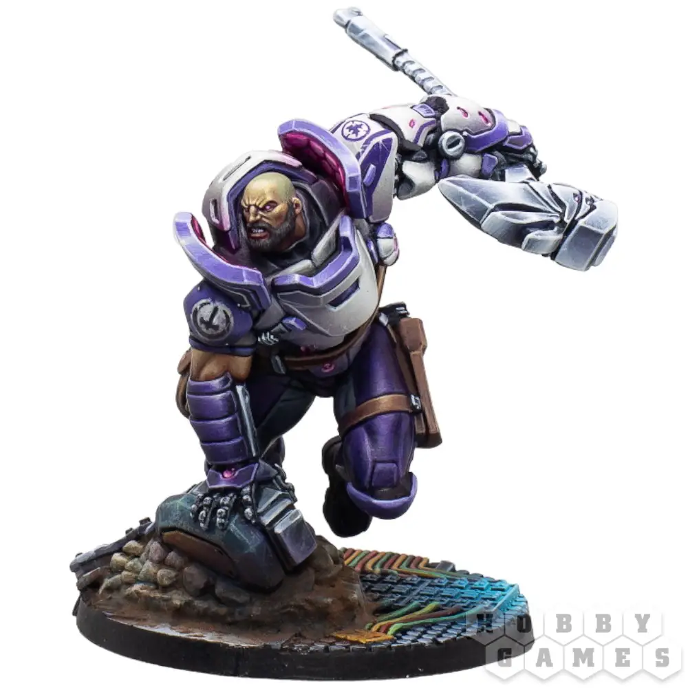 В эту коробку входит миниатюра Ajax the Great, изготовленная из термопластика. Если вам нужна необузданная грубая сила, не раздумывайте дважды и включите Ajax в свой набор ALEPH Steel Phalanx Sectorial Pack. Ни один противник не сможет противостоять мощному удару его молота!