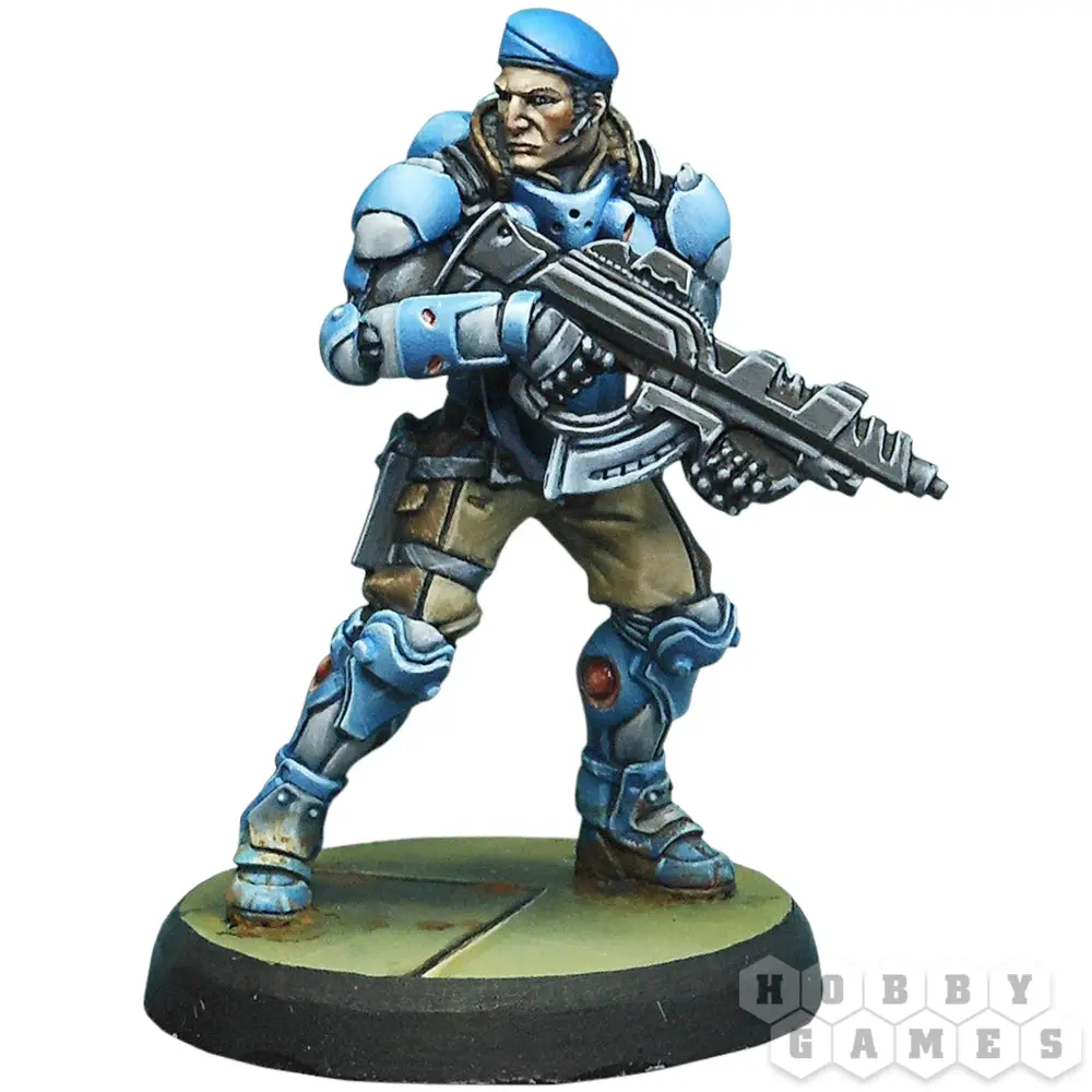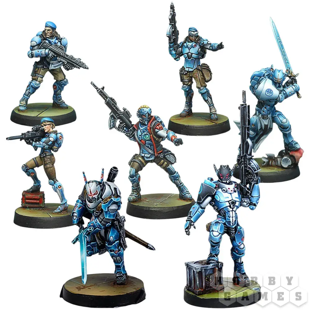 Infinity. JSA N5: JSA Army Pack – идеальный набор для начала коллекционирования и игры за PanOceania. В комплекте предусмотрены карточки характеристик для каждой миниатюры и отдельная карточка для оружейного графика.