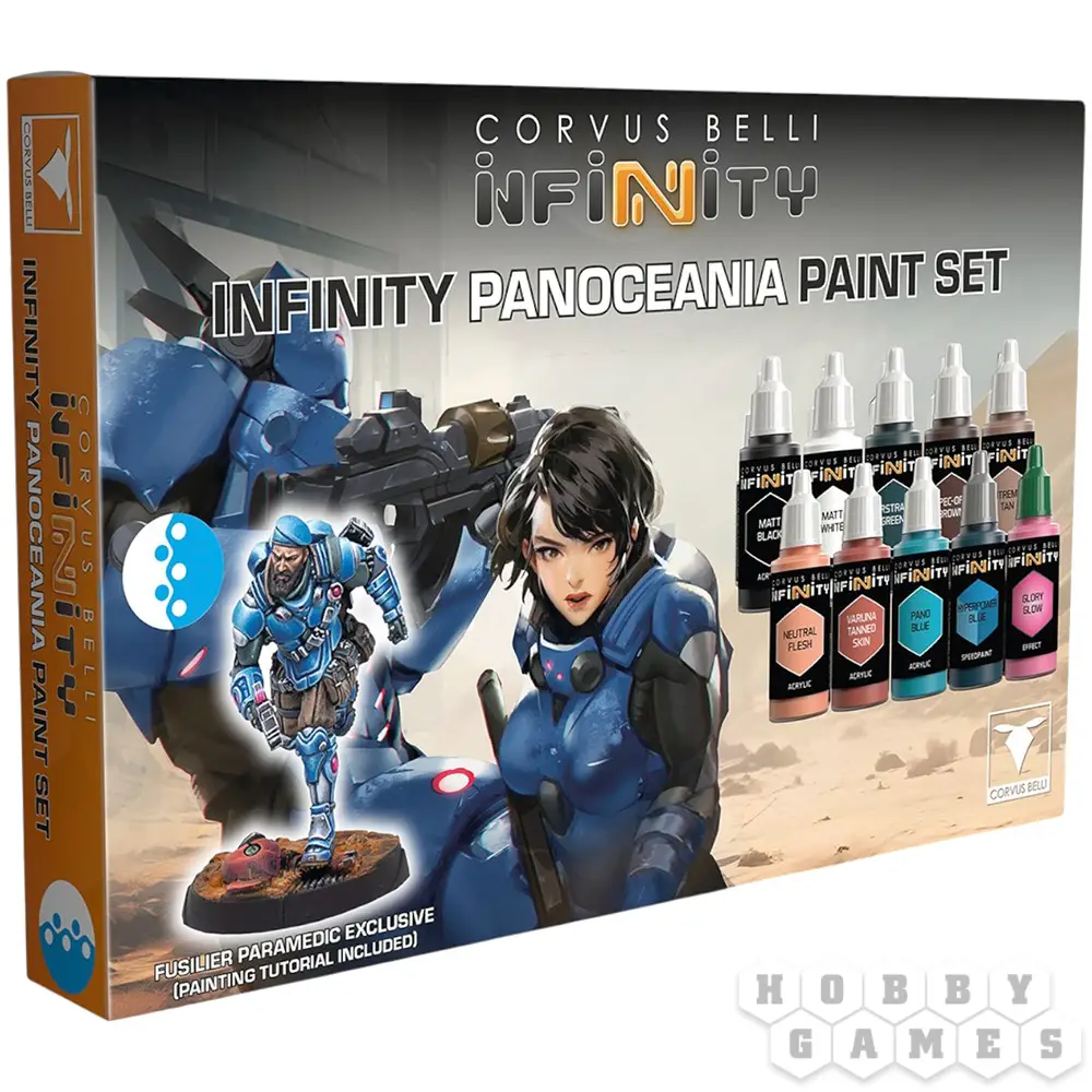 Этот набор позволит вам использовать все необходимые цвета для раскрашивания моделей, принадлежащих фракции PanOceania. Внутри вы найдёте 10 красок, которые понадобятся вам для придания своим миниатюрам фирменного цвета фракции, а также эксклюзивную миниатюру Fusilier Paramedic, которой нет нигде, кроме этого набора. Вы также найдете 10 цветов, которые понадобятся вам для раскрашивания вашей армии PanOceania.