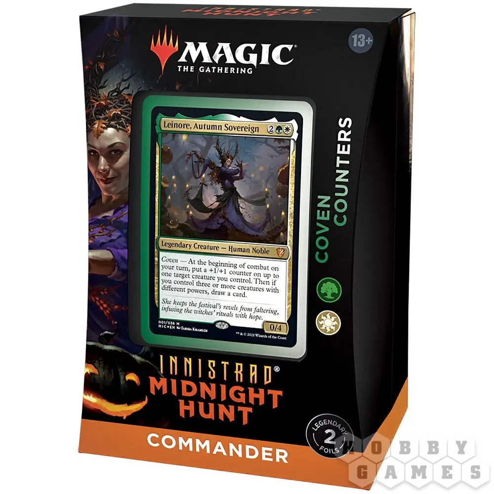 В "Иннистраде" вы традиционно найдёте две колоды для формата Командир. Во главе одной из новых армий стоит прекрасная Лейнора, Владычица Осени. Она сумела внушить жителям Иннистрада надежду на наступление рассвета в окружающем их мраке бесконечной ночи. Лейнора усиливает своих гостей с помощью Шабаша и рассчитывает выстоять против любой угрозы. Возглавьте армию людей и сокрушите своих противников!