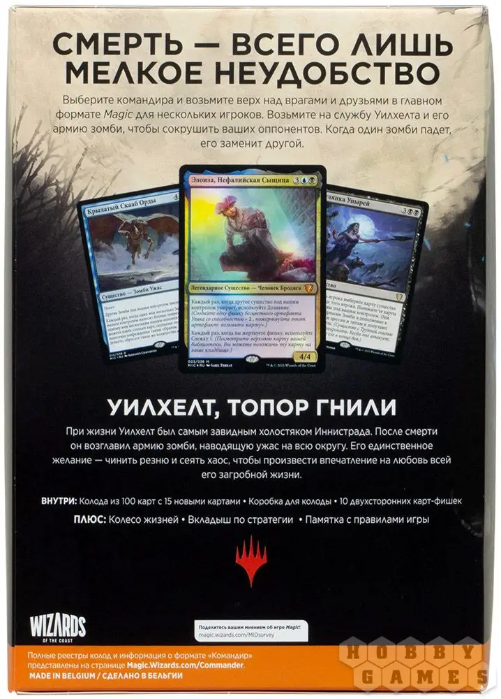 "Иннистрад" предлагает вам двух новых персонажей для сражений в формате Командир. Один из них – это внушающий истинный ужас живой мертвец Уилхелт, Топор Гнили. Он ведёт за собой толпы гниющих зомби, и даже если уничтожить одного из них, его моментально заменит новый. Уилхелт не идёт к какой-либо цели, а просто наслаждается учиняемым хаосом и кровопролитием. Сокрушите своих оппонентов во главе армии мертвецов!