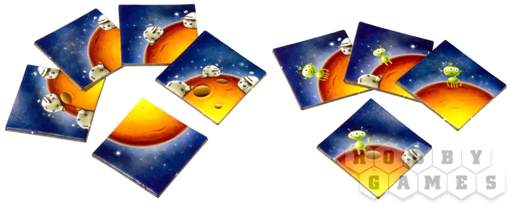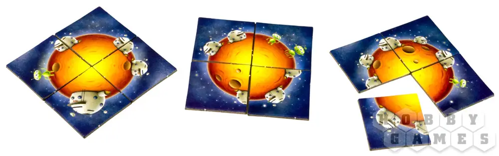 Игроки тянут карточки с фрагментами планет и стараются собрать из них комбинации. Но не просто так, а строя космические станции, также изображенные на карточках.