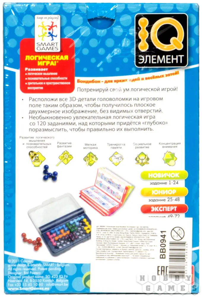 Помимо развития собственного интеллекта, игра поможет отвлечься от рутинных дел, отдохнуть и развеяться. Все 3D-детали головоломки необходимо расположить на игровом поле таким образом, чтобы получилось плоское двухмерное изображение. Логическая игра головоломка IQ-Элемент – отличное средство испытания аналитических способностей вас и ваших друзей! Удобная упаковка и компактный дизайн игры позволяет брать ее с собой и в офис, и в дорогу, и на отдых.