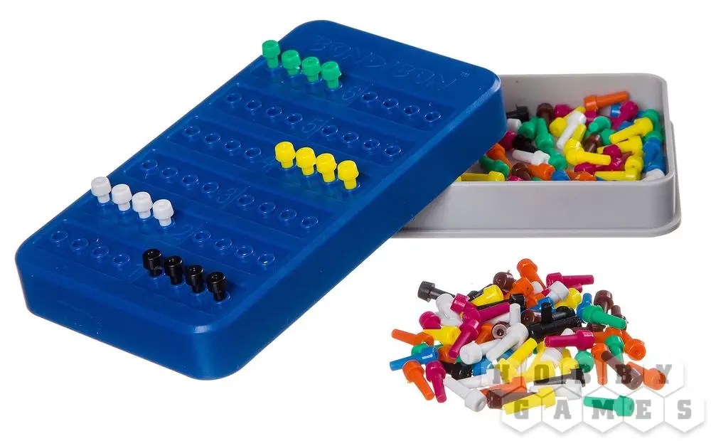 Задача игры может показаться простой - отгадать шифр перебором, но сделать это нужно за минимальное количество ходов. Для этого один из игроков загадывает комбинацию из 4-х цветных фишек, установив их в специальном углублении, а другой должен её угадать, устанавливая на игровое поле имеющиеся в наборе фишки, кроме белых и чёрных. Белыми и чёрными фишками загадывающий игрок даёт информацию о правильности ходов партнёра. Игра развивает наблюдательность, логику, мелкую моторику и пространственное мышление.