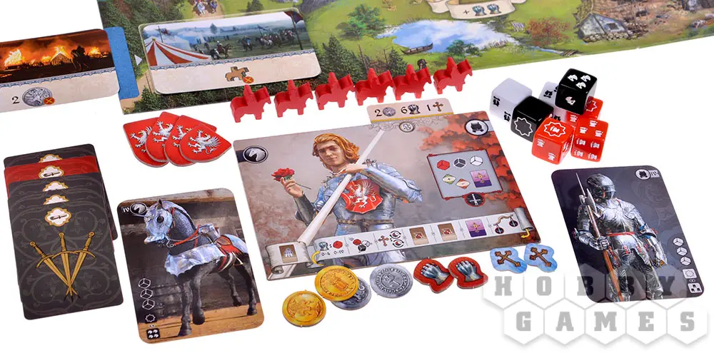 Игра состоит из нескольких частей – перед турнирами рыцари готовятся к поединку, молясь в церкви, приобретая доспехи и скакунов и заручаясь поддержкой горожан. Для этого игроки размещают свои фишки в разных зонах игрового поля в фазу действий, после чего путешествуют, получают эффекты от полученных бонусов в фазе обновления и записываются на турнир. Турнир состоит из нескольких поединков, во время которых игроки бросают кубики и влияют на результаты бросков с помощью своих способностей. После этого вы переходите к фазе титулов – если вы выполнили условия с карт титулов, выложенных в начале игры, то получаете за них очки славы. В игре есть два вида турниров, плезанс, когда игроки сражаются на выбывание друг с другом и с соперниками, которыми управляет игра, и падарм, когда игроки не сталкиваются друг с другом напрямую, а состязаются в количестве побед, одержанных над рыцарями (неигровыми персонажами) в разных городах Европы.