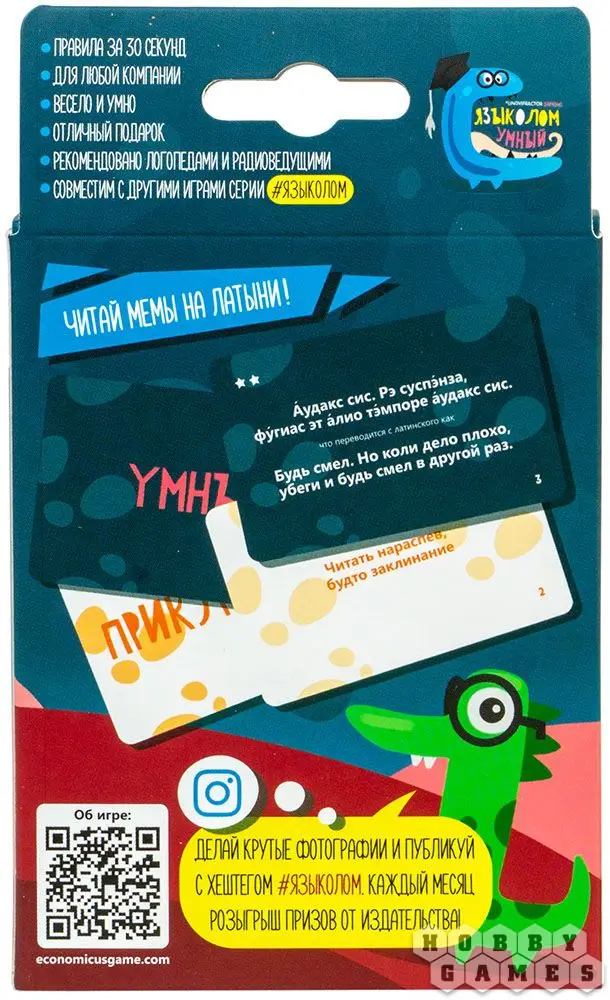 Быстрая и весёлая игра для всех, кто умеет читать! А особенно для тех, кто любит блеснуть остроумной цитатой на латинском! 84 новые карточки заданий – c умными латинскими высказываниями реальных исторических и не очень персонажей. А ещё 11 карт приключений! Можно играть как в самостоятельную игру, а можно добавить эти карты к играм Языколом и Языколомище!